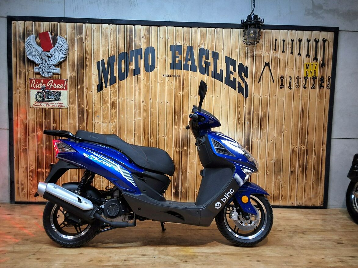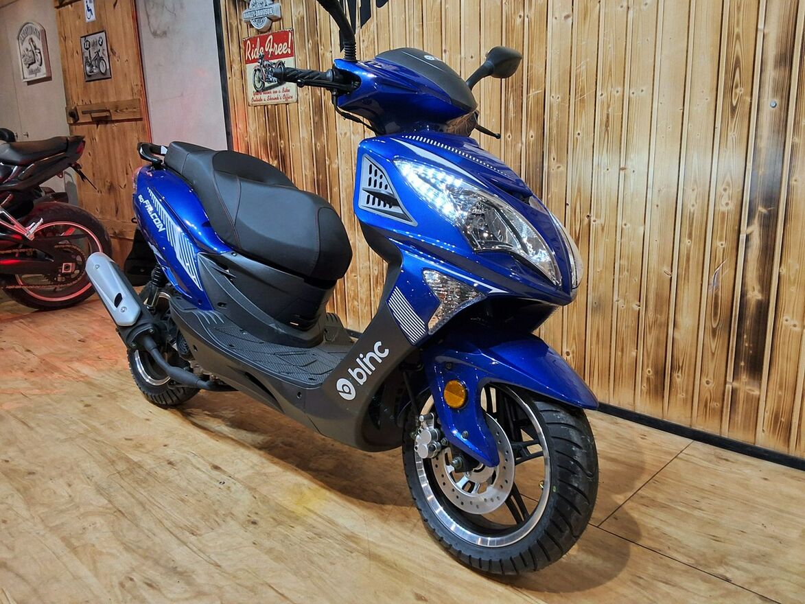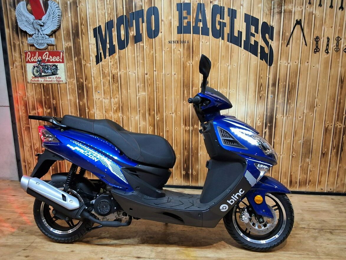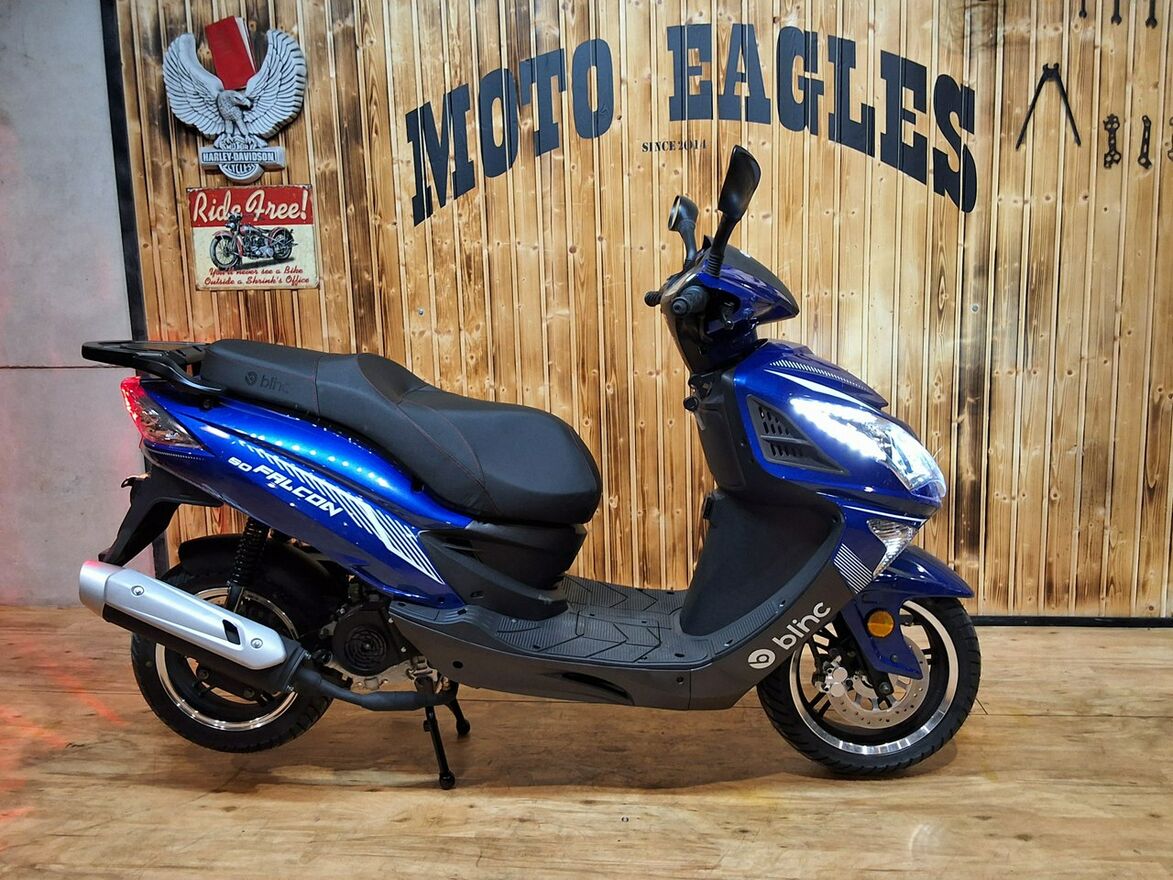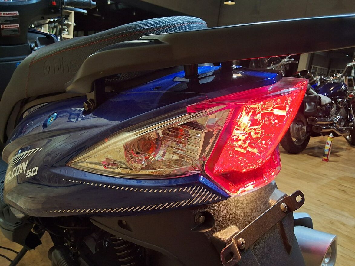 Skuter Blinc Falcon 50 to typowo miejski pojazd z silnikiem czterosuwowym o pojemności 50cm3. Zestawiony jest na felgach aluminiowych - 13" z przodu i 12" z tyłu. Bezstopniowa skrzynia biegów CVT daje wygodę jazdy i prostotę obsługi. Możliwość odpalenia z rozrusznika elektrycznego lub "na kopkę". Duży i dynamiczny pojazd pozwoli na łatwe przemieszczanie się w mieście oraz wygodne podróżowanie poza miastem.