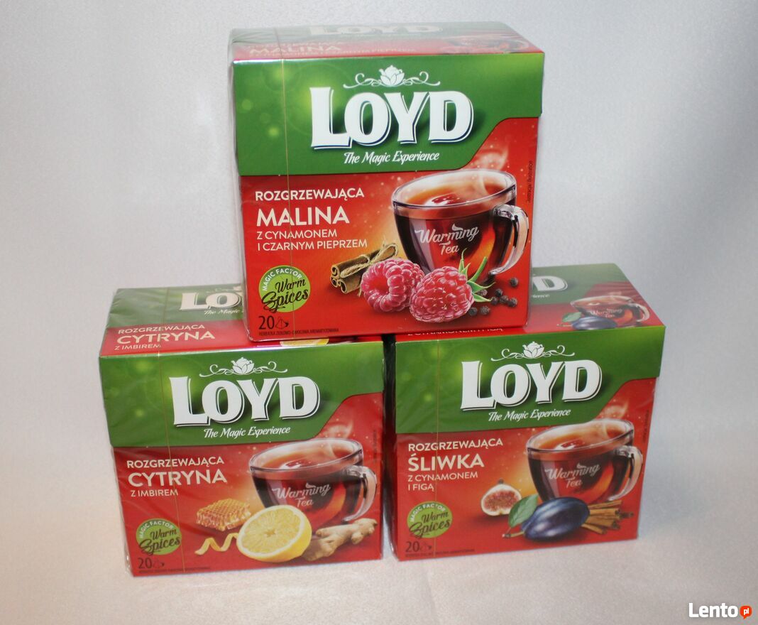 Herbata rozgrzewająca Loyd 20 torebek. Herbaty w zimowych 4 smakach:- cytryna imbir miód;