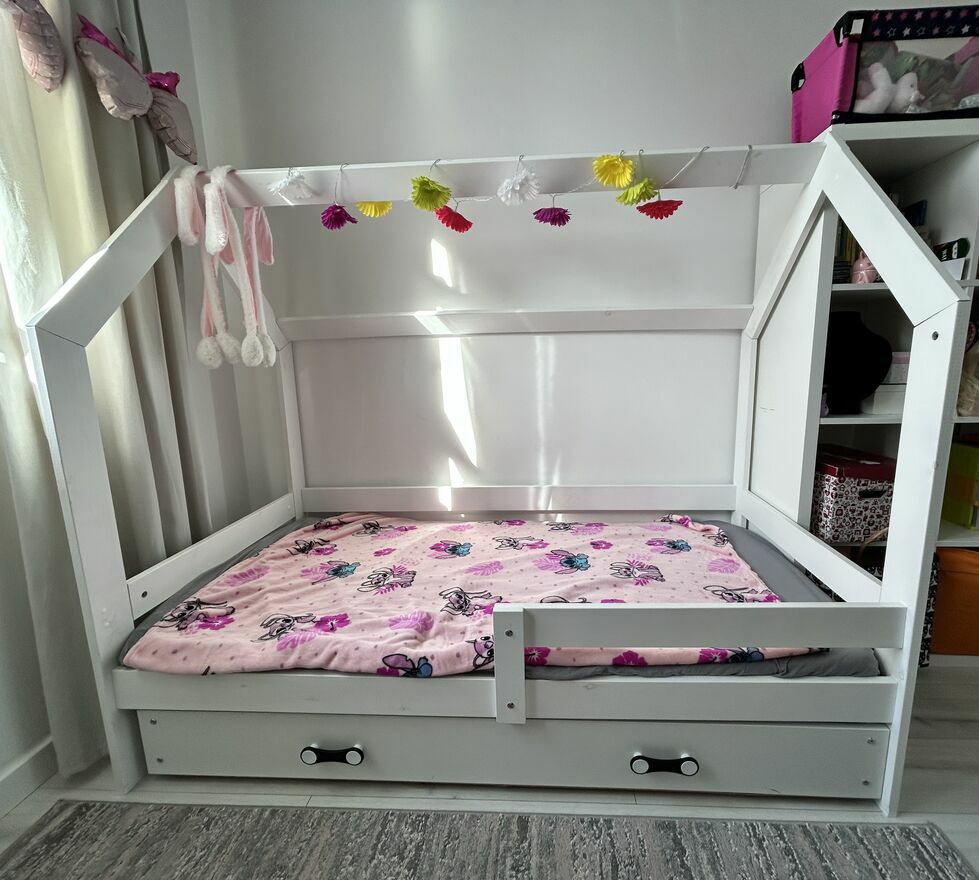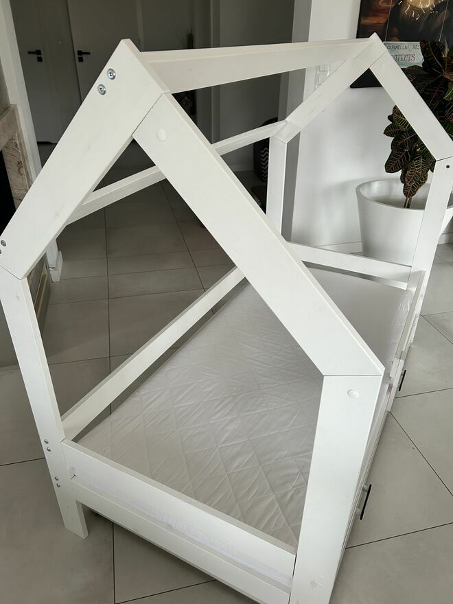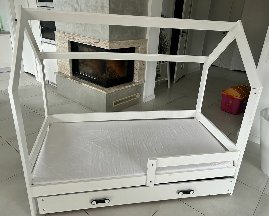 Białe łóżko dziecięce w kształcie domku – idealne do pokoju dziecka. Wykonane z solidnego drewna, stabilne i bezpieczne, z barierkami chroniącymi przed wypadnięciem. Uniwersalny biały kolor pasuje do każdego wnętrza i stylu. Łóżko może służyć zarówno do spania, jak i zabawy, tworząc przytulną przestrzeń dla malucha. Stan bardzo dobry, gotowe do użytkowania. Rozmiar 80 na 160. Dodatkowo pojemna szuflada. Odbiór osobisty.Sprawdź zainteresowanie tym ogłoszeniem