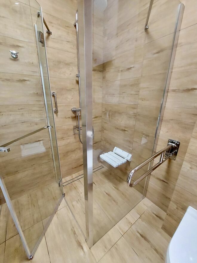Na wyposażeniu mieszkania jest zainstalowany system przywoławczy z całodobową opieką pielęgniarską.