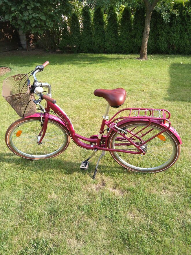 Sprzedam rower Legrand ciemno różowy, rozmiar S, koła 26, hamulec V-brake, przerzutka wew. (w piaście). Rower jest po przeglądzie, stan bardzo dobry.Robert